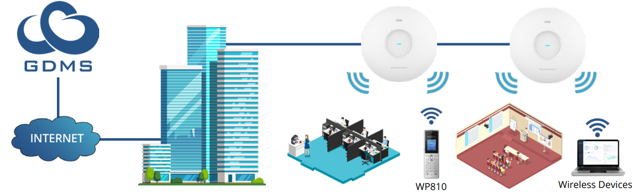 Contrôleur intégré gérant jusqu’à 50 points d’accès GWN locaux ; GDMS Networking offre une gestion illimitée des AP, et GWN Manager offre une gestion logicielle des AP sur site